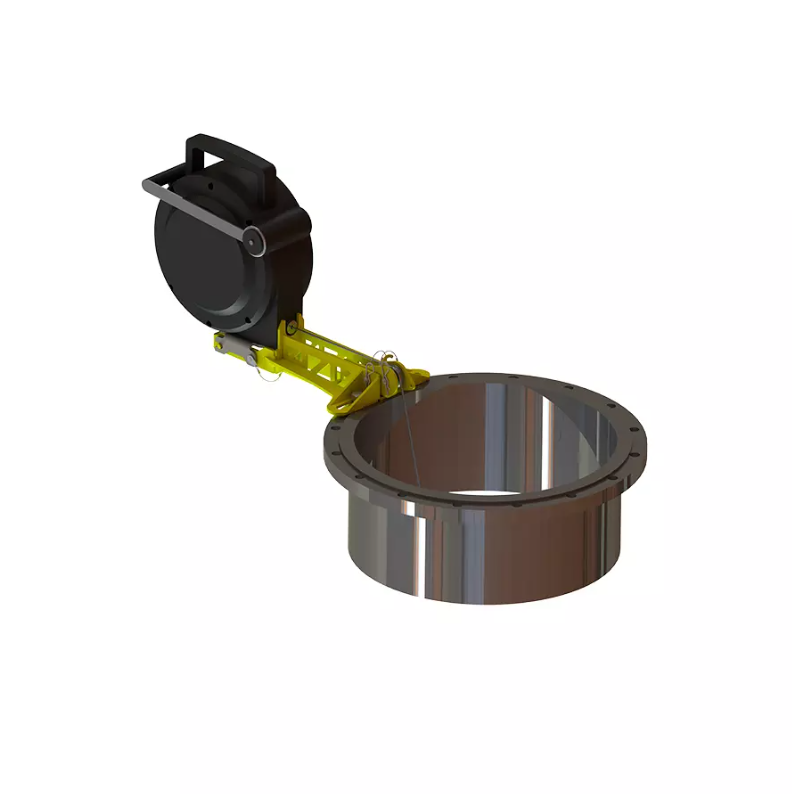 Устройство представляет собой сборную конструкцию, которая с помощью двух болтовых соединений типоразмера М16 устанавливается на фланец горловины люка. После установки на устройство могут быть смонтированы совместимые спасательные устройства.